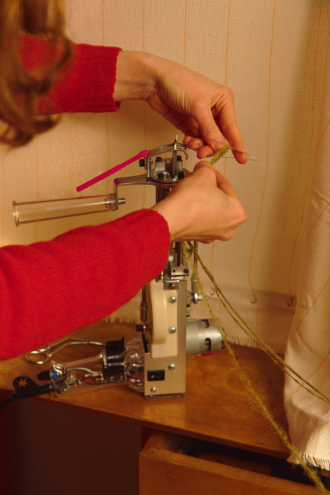Working closely with clients, Megan develops hand-tufted fabrics, cushions, and rugs that respond to a project’s palette, material direction, and mood. Bespoke yarns can also be hand-spun or dyed in-house to achieve specific colour, fibre, or textural compositions.